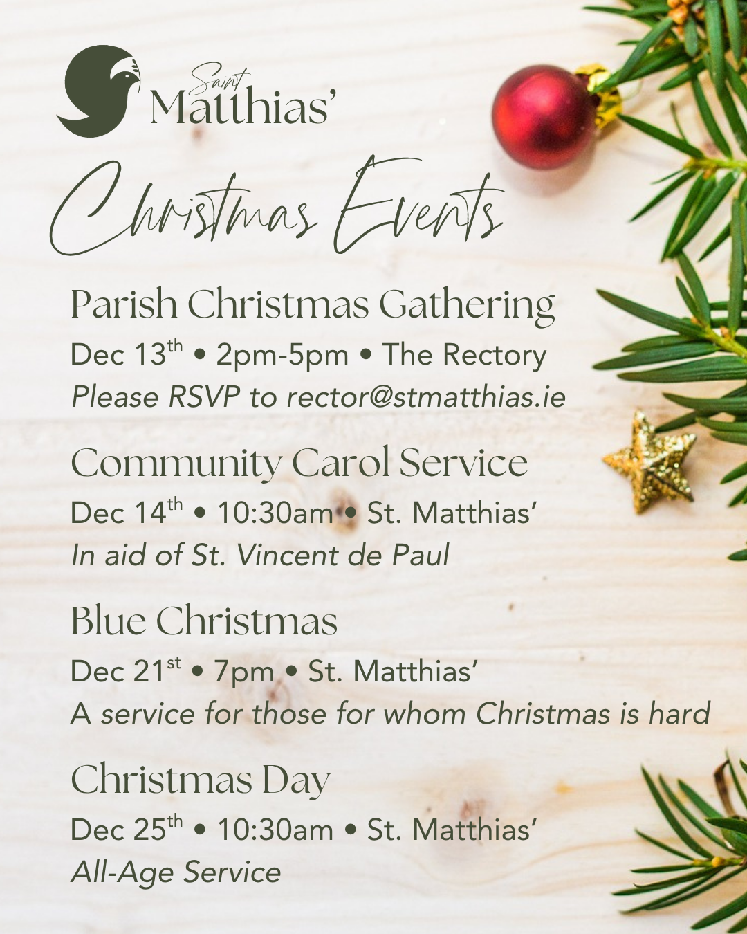 Located in Killiney-Ballybrack and just up the hill from Cherrywood and Loughlinstown, St. Matthias’ is a welcoming Anglican church with a vision to live life to the full. We are committed to sharing the good news about Jesus through building relationships and serving our community. If you are new to the area and/or looking for a new church we would love to meet you.