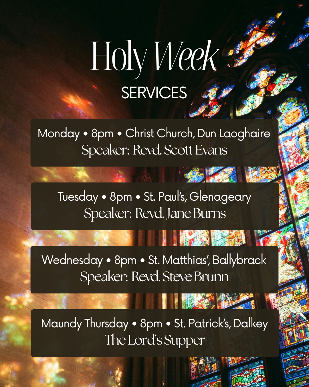 To catch up on our sermons, you can find them on video on Instagram and Facebook or subscribe to our podcast on Spotify.